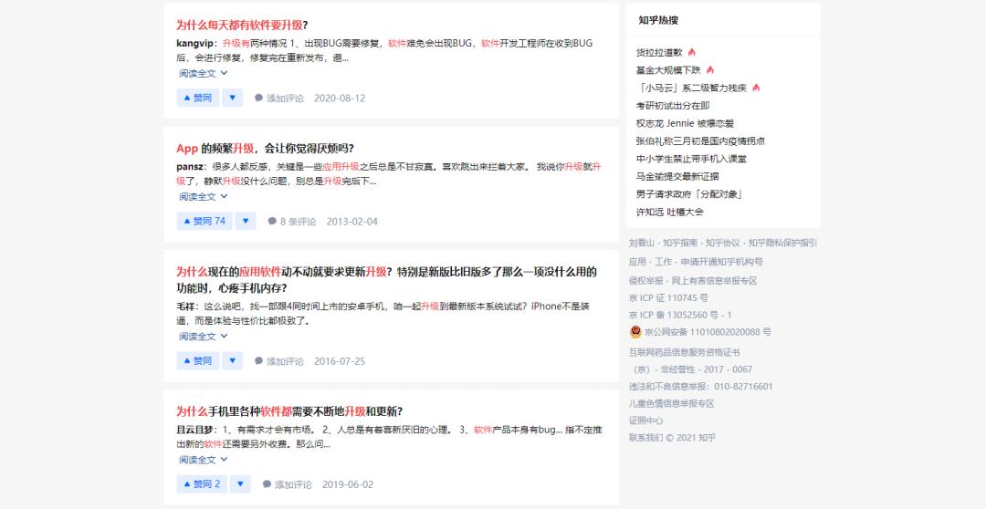 其实很多网友都对手机App频繁更新的现象感到不满,随手打开知乎,你能看到一整页有关“为什么每天都有软件要更新”的相关问题。有的用户表示,自己的手机原本用得好好的,但是因为App频繁更新占用手机大量存储空间,最终导致自己的设备承载不了软件的需求,体验呈直线型下滑。