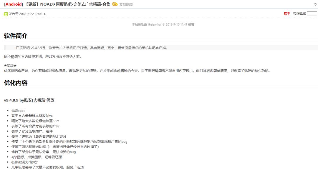 为了解决App频繁的问题,修改版应用诞生了。NOAD★百度贴吧应该是很多贴吧用户都非常熟悉的一款应用,这款产品不仅占用内存极少,而且其界面简单清爽,只保留了贴吧的核心功能。因为是修改版应用的缘故,在应用商店里面也不会提醒升级,简直完美。