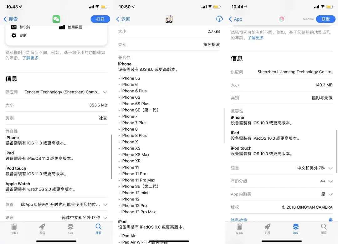 当然,系统维护周期也常常包含软件所支持的系统层级,现在打开 App Store 就能发现,像《轻颜相机》的 app 支持的 iOS 系统版本已经是 iOS 10 以上了,更大众一些的游戏,像《原神》也仅仅是 iOS 9.0 以上版本,最新版微信更是要求 iOS 11.0 及以上版本。