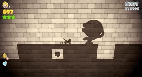 我最喜欢的是影子关卡,任天堂将怪物和地图的元素隐藏了起来,用影子来表示,使得玩家对于物体的距离感变得模糊,需要通过影子的位置与大小来探索地图,给操作带来了很多新鲜感。