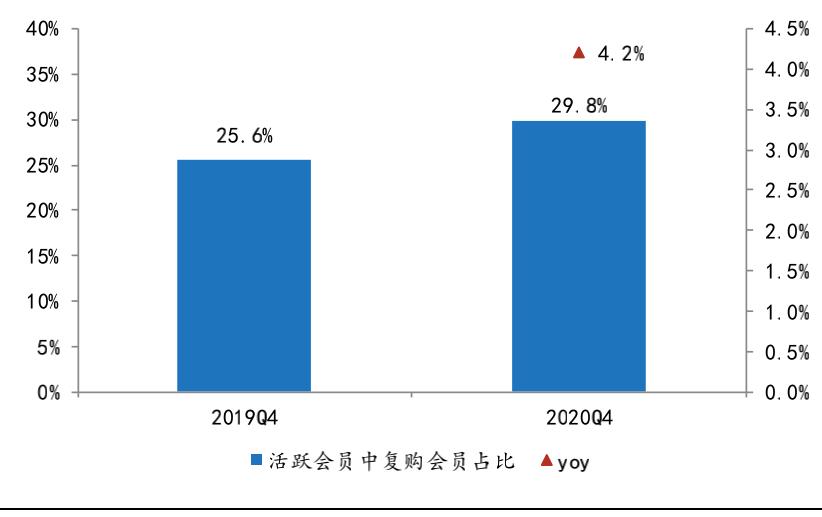 图7:奈雪活跃会员中复购人数占比数据,来源:公司招股书,国泰君安证券研究