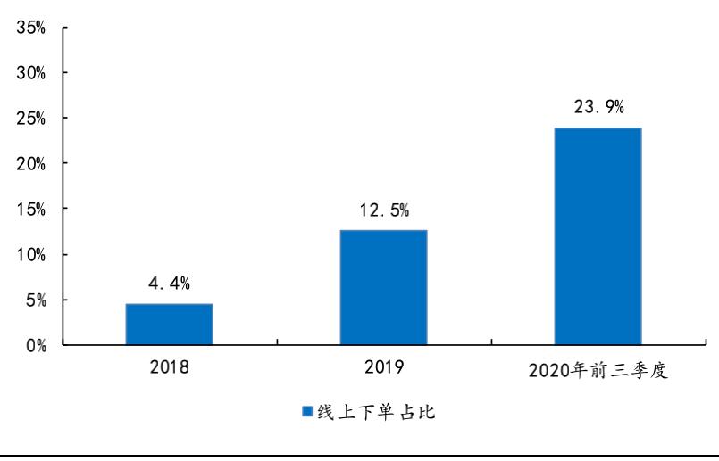 图5:历年奈雪线上下单占比数据,来源:公司招股书,国泰君安证券研究