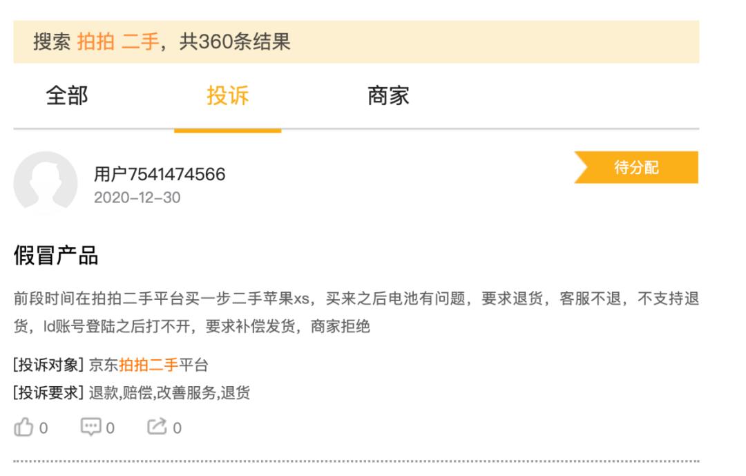 这也是第三方消费者投诉平台上,拍拍充斥着翻新机投诉的原因。