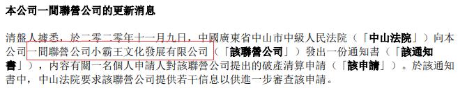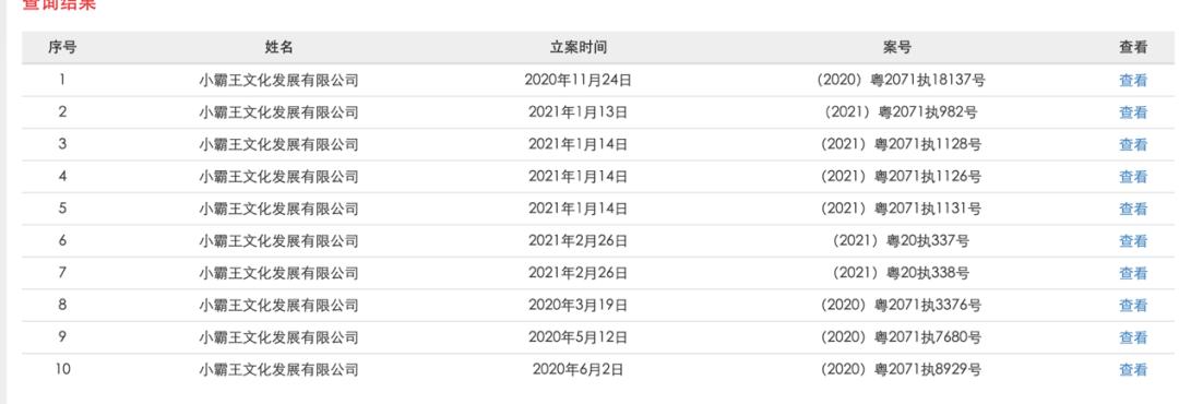 2020年11月,全国企业破产重整案件信息网公告,小霸王文化被申请破产清算。目前,中国执行信息公开网显示小霸王文化有超过50条执行信息。