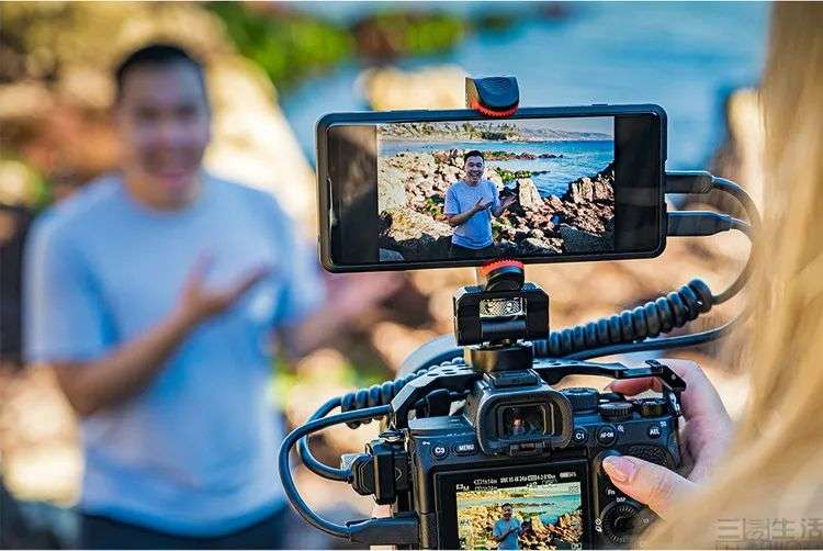 例如现在越来越多的相机都配备了与手机“联动”的功能,最简单的是可以直接在手机上查看相机里的照片,便于用户随拍随发。高级一点的是可以通过手机屏幕远程控制相机,从而将复杂的旋钮和按钮操作变为现代人习惯的触控操作。而更高级一点的设计,甚至还能直接让手机成为相机或摄像机的一部分,通过结合手机的算力、显示能力和通讯能力,来为传统影像设备增添更多的功能。
