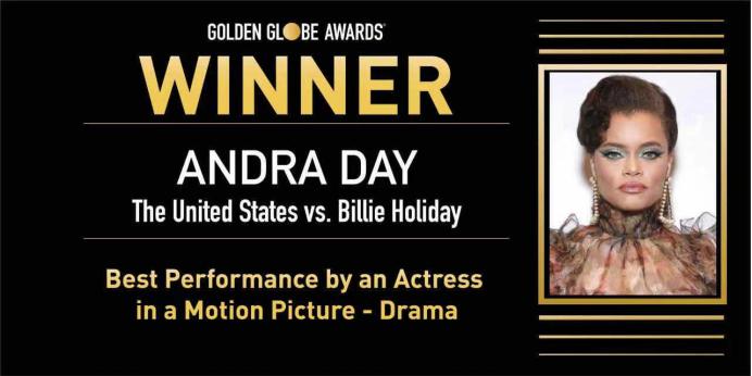 而剧情片最佳女主角的得主则大爆冷,由《美国诉比莉·哈乐黛》中的安德拉·戴获得。 这个奖也是本届金球奖比较引起争议的一个奖项,毕竟剩下四位都是本届颁奖季的种子选手,反而是安德拉·戴,既没有入选英奥(BAFTA)最佳女主角的15人大名单,也没有提名美国演员工会奖(SAG),仅提名了本届的评论家选择奖(CCA)。在其他风向标上表现被冷落,却空降金球奖并摘得影后,不少人对于她接下来的冲奥之路并不看好。