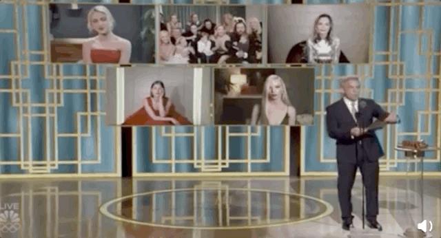 而且,今年的金球奖并没有设置入围嘉宾的现场席位,虽然有两位主持人分别在纽约市和加州比佛利山两地联合举行,但相比以往的台上主持人讲段子,台下一众大咖齐参与,今年的入围者则几乎都是在家中面对摄像头,感觉有点像在开视频会议,多少也少了些现场参与的乐趣。