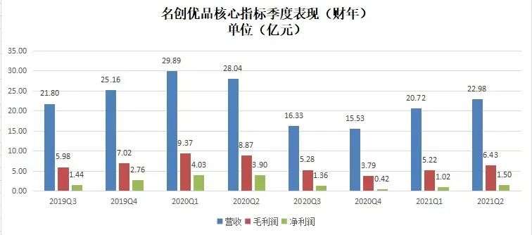 截至2020年12月31日的2021年Q2财报显示,名创优品当季总营收为人民币22.98亿元(约合3.521亿美元),环比增长11%。