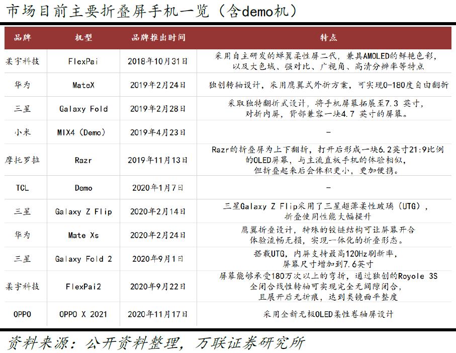 这些产业链企业分布在材料、显示屏、精密组件、电子电路及生产制造设备等各个领域,由这些领域各厂家协同组成的供应链,是搭建折叠屏手机技术落地的重要基石。