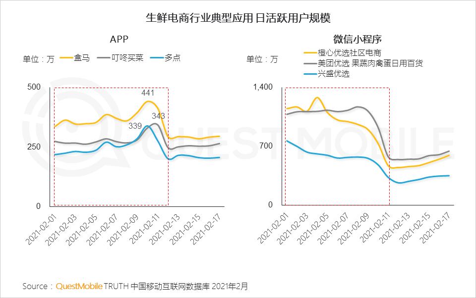 3.3 习惯养成+节前囤购,过年前几天人们对于生鲜商品的需求依然保持高涨,甚至在除夕当天迎来新的小高峰