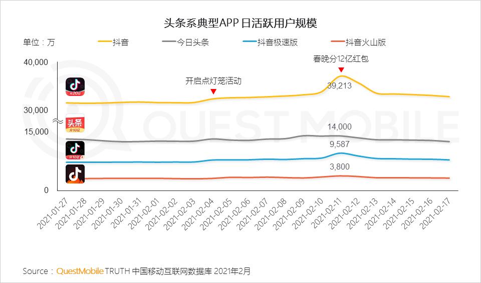 2.2 头条系:抖音首度与央视春晚合作,联合旗下多个应用展开红包大战,点灯笼活动也成为集五福同时人们的又一大春节娱乐