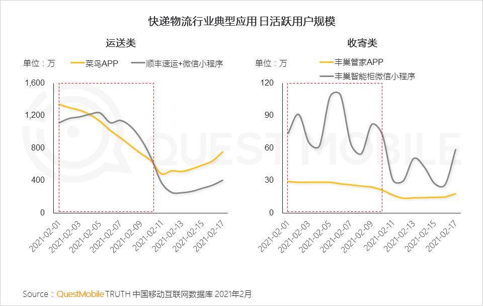 3.2 伴随着电商消费,快递物流行业在节前也保持了较高的活跃度,用户量在除夕夜前几天依然保持较高规模