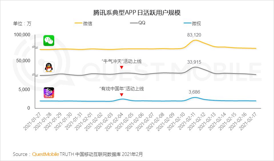 2.4 腾讯系:作为春晚红包的开创者,微信依然是人们除夕夜拜年发红包的重要渠道,QQ和微视上线春节营销活动也迎来明显增量