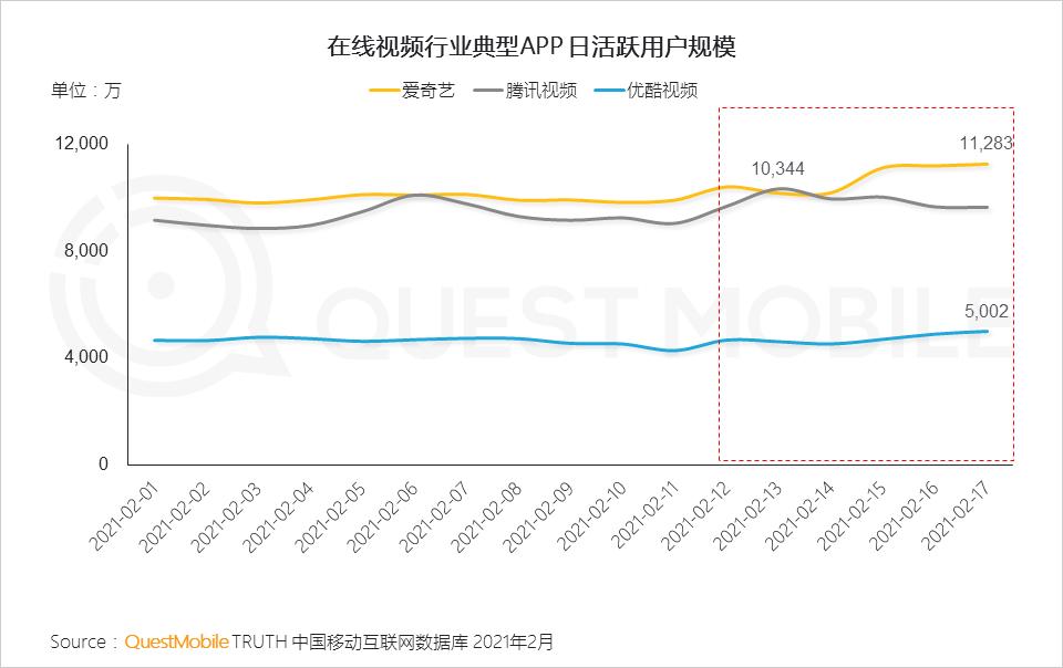 根据QuestMobile数据显示,较往年春节期间一线城市就地过年人群的增多,也促使一线城市移动网民规模的增长,不同于过去有大量的时间需要陪伴家人,留驻一线城市人们有更多的空闲可以娱乐消费。