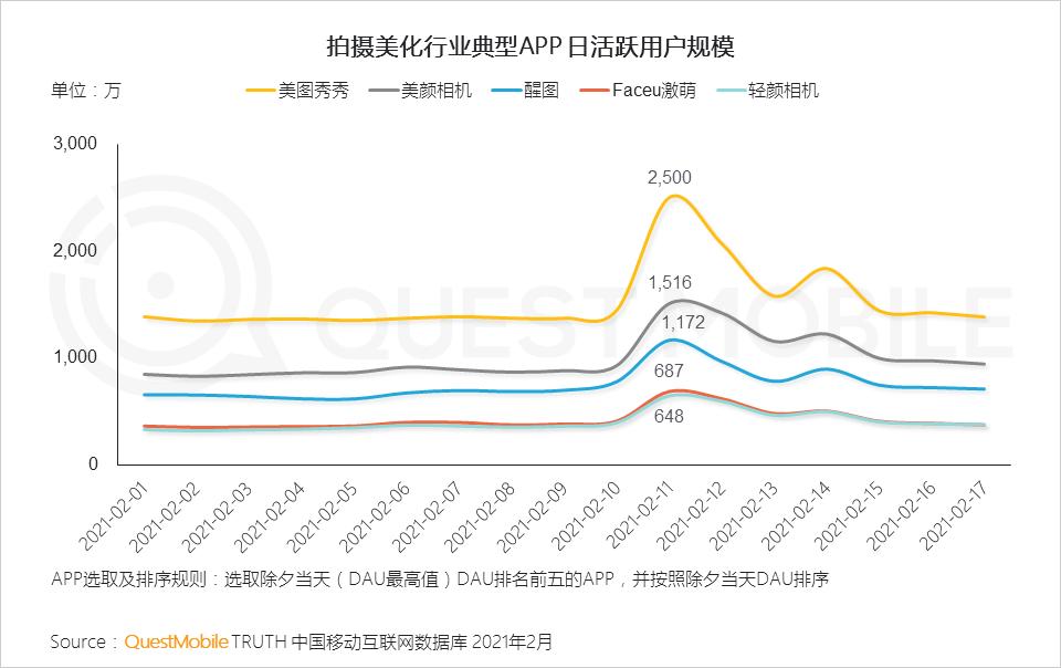 4.5 过年娱乐也不能忘了拍照留念,为了留下最美的瞬间,人们也在尝试不同的应用功能,拍摄美化类APP流量增长接近50%