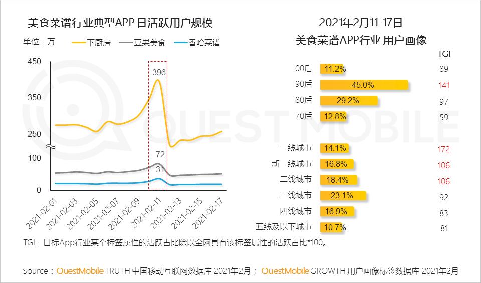 3.5 仪式感下,美食菜谱类应用成为许多高线城市年轻人群的“救命稻草”,但除夕刚过就热情不再