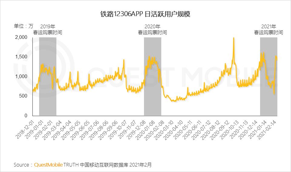 2、不同于以往春运抢票热潮,今年春运12306用户量出现大幅下滑,人们的关注点从如何抢票回家转向怎么就地过年