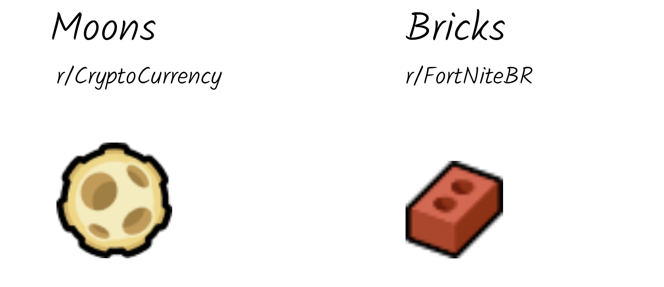 一旦用户在r / CryptoCurrency上面参与和创作内容,就可以获得“Moon”的奖励,这个玩意儿之后可以用来购买特殊徽章或其他功能(比方说用GIF回复帖子)。你持有的moon的数量也会影响你对这个subreddit进行的投票调查的影响:你的moon越多,你的投票就越重要。r / FortNiteBR上面也有类似的系统,Epic游戏的粉丝也可以获得“Bricks”。