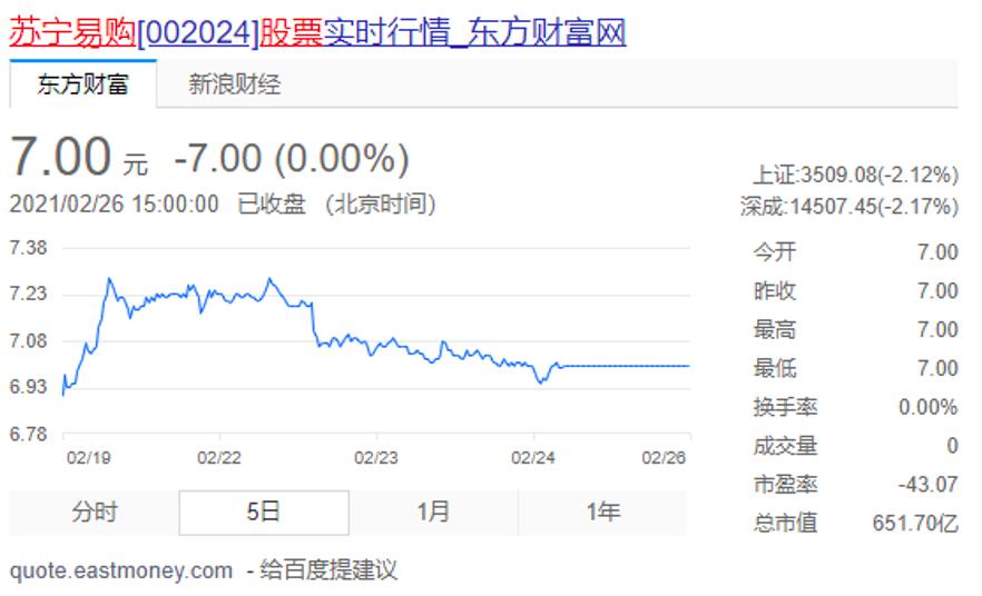 从股票走势来看,从2月19和2月22日之后,苏宁的股价就在下滑,而股权转让事件一旦曝光,对于苏宁股价走势影响更甚,所以为避免投资者利益受到损害,苏宁决定停牌5个交易日左右。那么在这5个交易日内,苏宁会能不能确保挽救这次危机,还很难说。