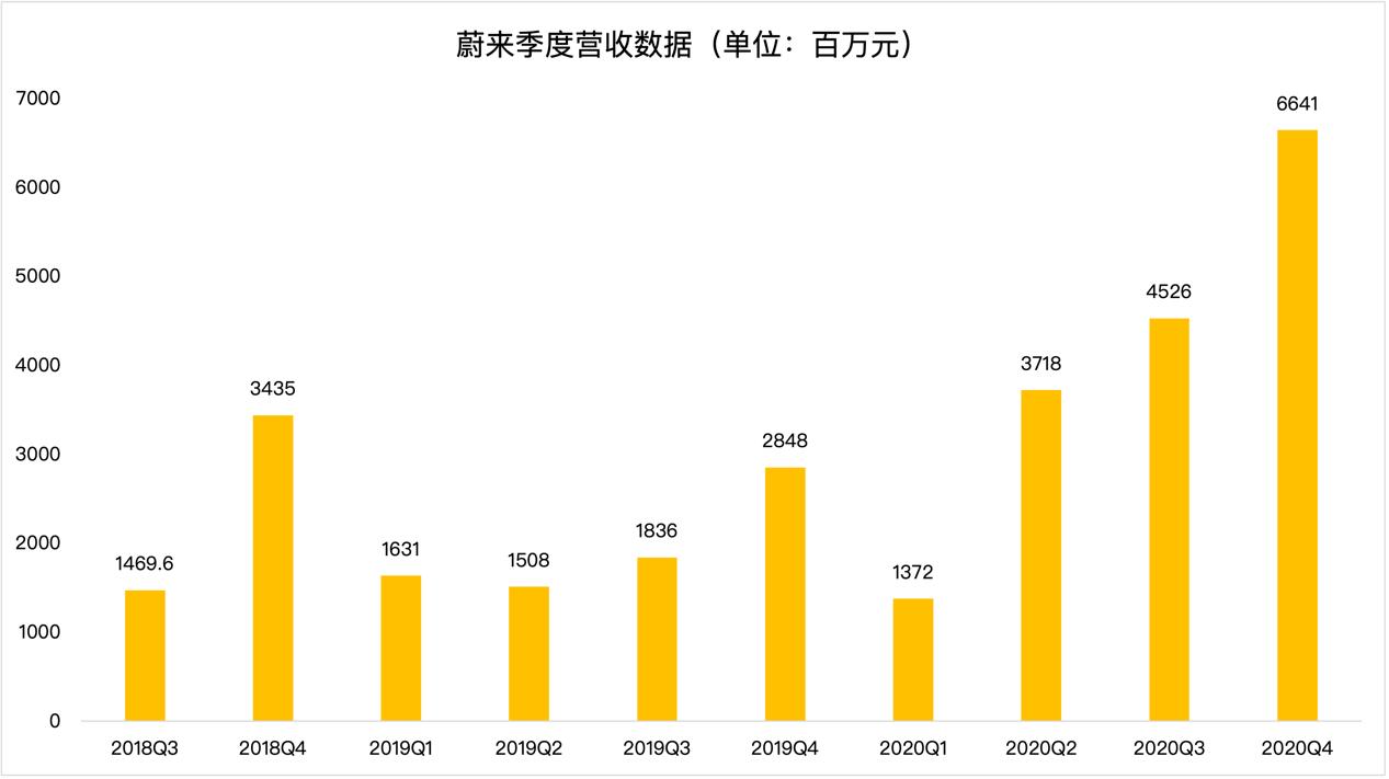 蔚来汽车第四季度总营收为人民币66.411亿元,同比增长133.2%,环比增长46.7%。