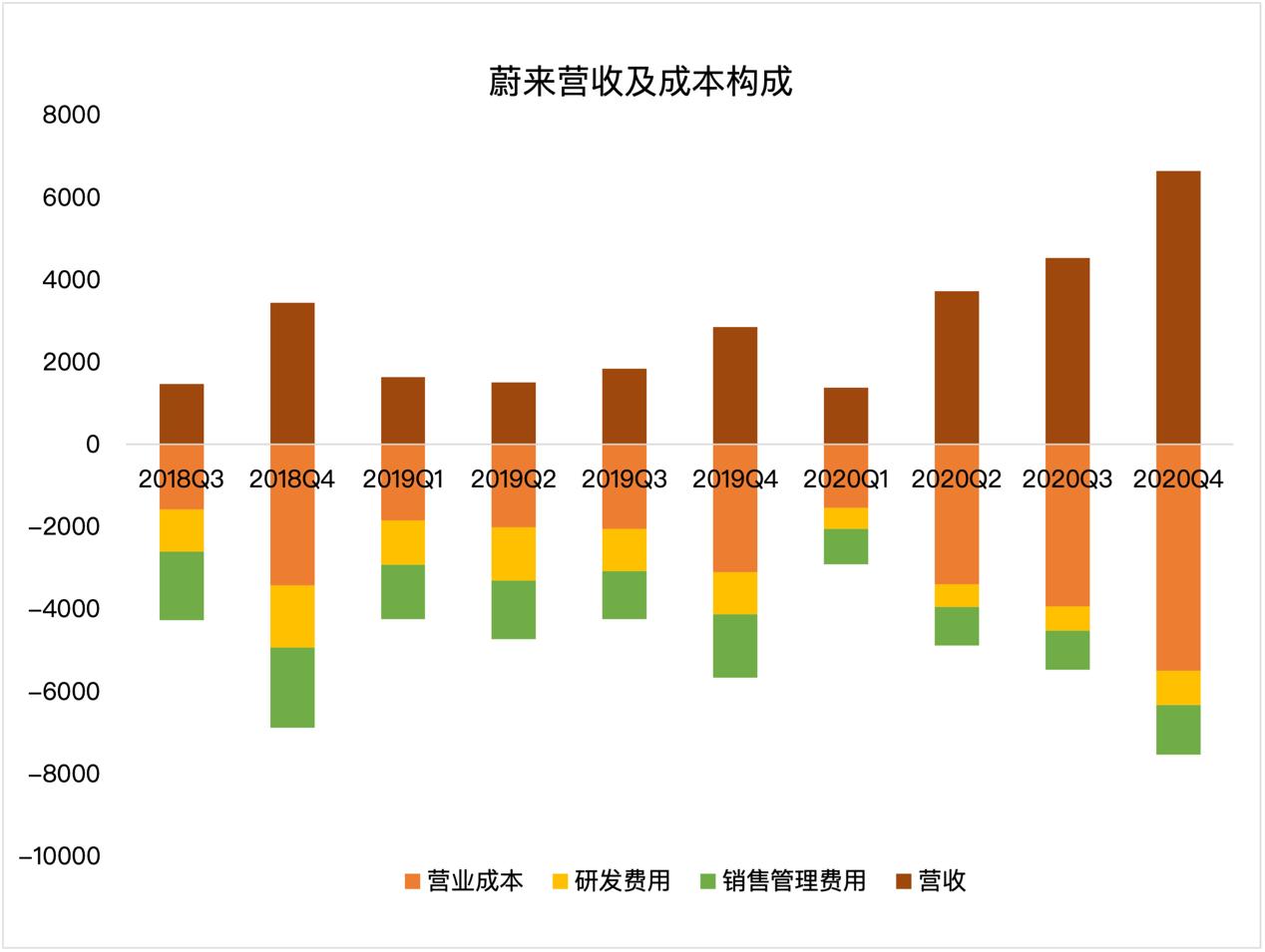 蔚来毛利率在Q3首次实现双位数增长,Q4延续了这一趋势。2020年第4季度汽车销售毛利率为17.2%,去年同期为负6.0%,上季度为14.5%。2020年第4季度综合毛利率为17.2%去年同期为负8.9%,上季度为12.9%。