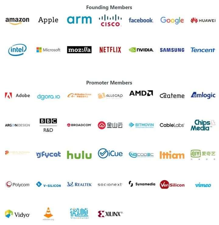 这种无形的成本显然给新标准的推广造成了不小的阻碍,这也促使了 开发媒体联盟的诞生——由 Netflix、Google、Facebook、微软、三星、华为、腾讯等科技巨头联合组成了「复仇者联盟」,推出了指标看齐 HEIF 的 AV1 编码技术,并且不收任何授权费,开源给开发者们使用。