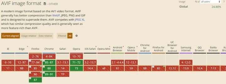 开源的标准似乎更容易得到网站和设备的支持,在 Google 和其他巨头的推动下,目前 AVIF 已经得到了 Chrome、Opera、Firfox 等浏览器的支持。