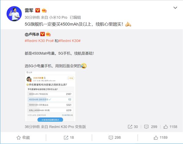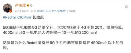 对此,雷军也发表了看法,表示5G旗舰机一定要买4500mAh及以上,续航才踏实。