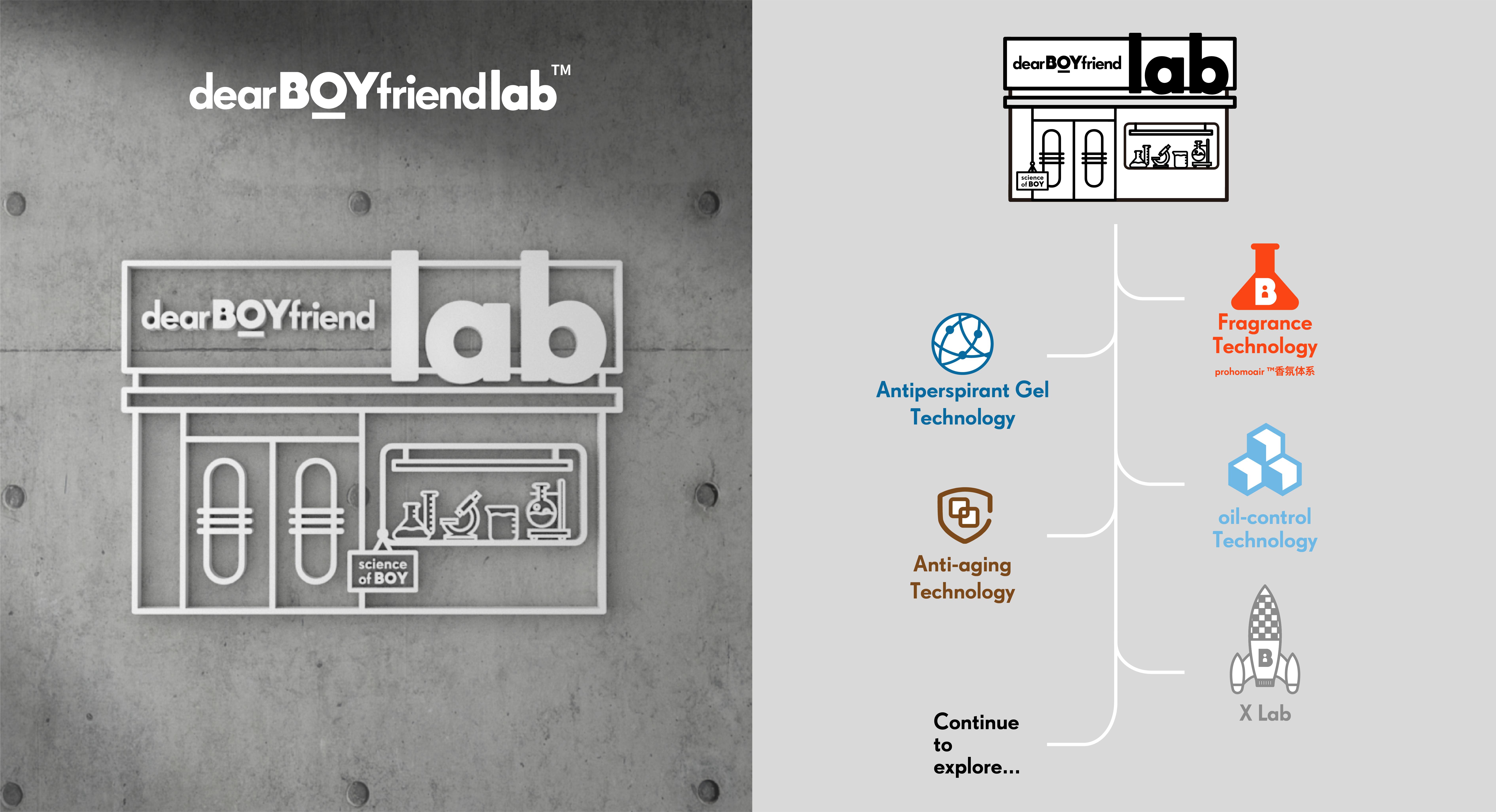 为了与传统欧美男士品牌和传统女士护理品牌形成差异化,亲爱男友设立了男士理容研究中心dearBOYfriend lab ™,并与国际知名原料公司合作,研发男士专研产品。BOY Lab 包含几个部分:BOY Lab Methodology,即产品开发金字塔理论;BOY science LAB ™研发男士功能性产品核心成份;BOYs of BOY LAB™邀请男性消费者作为新品体验官,参与产品及品牌设计。