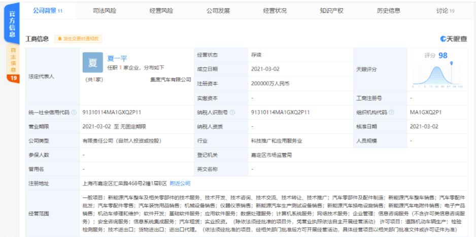 百度造车公司注册完成:注册资本20亿元,汽车品牌「集度」