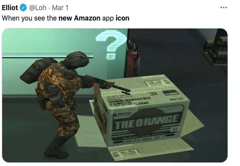 也有说法是亚马逊就是想要给自家的App换个颜色,毕竟过去白底黑字的图标太过普通,经常淹没在一大堆白底的App图标里(是的Google,说的就是你),而这个“土色土香”的微笑箱子,无疑是更能吸引用户眼球。