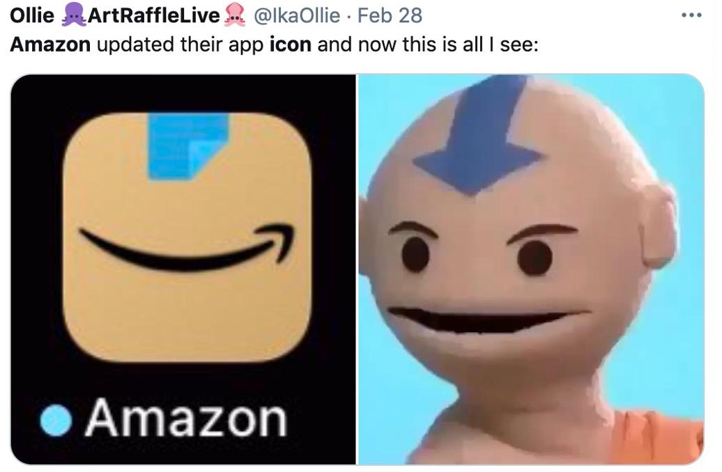 而新的图标也成为了强迫症患者的重灾区。不仅头上的胶带翘起了一边,就连微笑的表情也是左右不对称,大家不禁发问,难道它不能笑起来两边都有酒窝吗,亚马逊你可以考虑一下我们强迫症患者的心情吗?