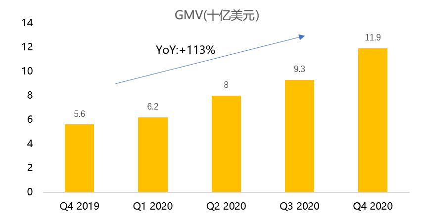 四季度,Shopee总营收为8.422亿美元,同比增长178.3%;GMV为119亿美元,同比增长112.5%。