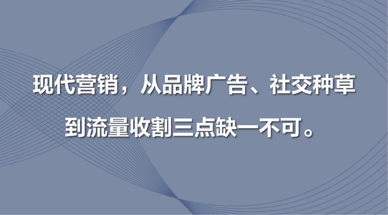 现代营销,从品牌广告、社交种草到流量收割三点缺一不可。