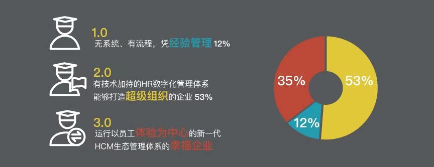 1.0是凭借经验和流程管理的初级阶段,2.0阶段指使用云、大数据、人工智能等新的技术手段进行人力资源管理和提升的超级组织。比如,在零售行业实施的薪酬实时结算,依靠数字创新,在不增加企业成本情况下实现工资日结,使得员工流失率大大减少。在制造业,智能排班、线上导师、薪酬福利自助等分享参与为重的在线人力资源管理平台建设都属于超级组织的打造。