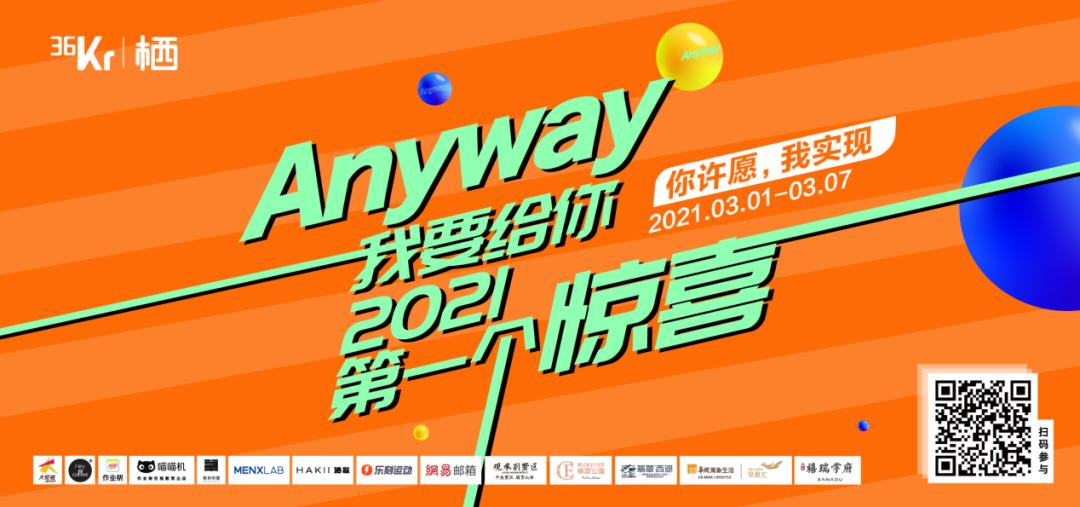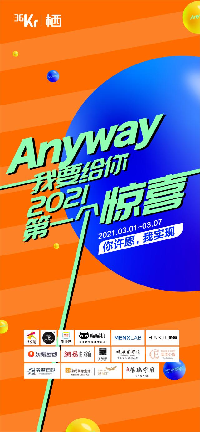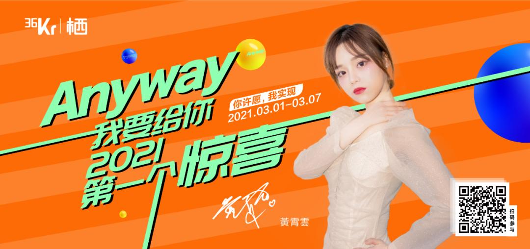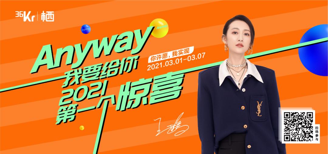3月1日,36氪未来地产事业部联合许知远的单向空间等多个合作伙伴,「Anyway,我要给你2021的第一个惊喜」已开放线上通道。同时,邀请了王鸥、黄霄雲以及虚拟偶像翎担任「首席心愿官」,一起聆听每个人心底的愿望与希冀,期待与你再一次不期而遇。这一次,你的Flag,由我们实现。