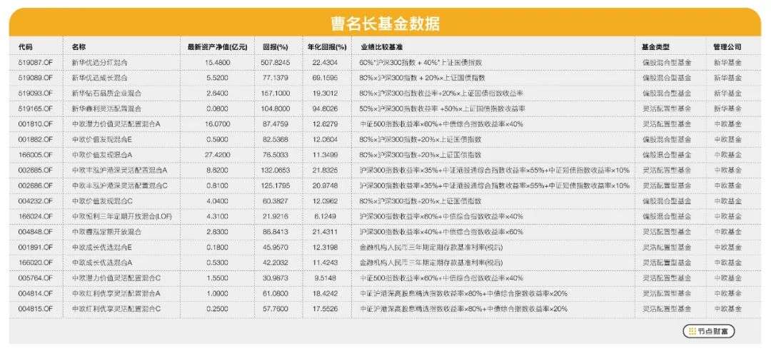 注:曹名长曾经及当下任职的基金