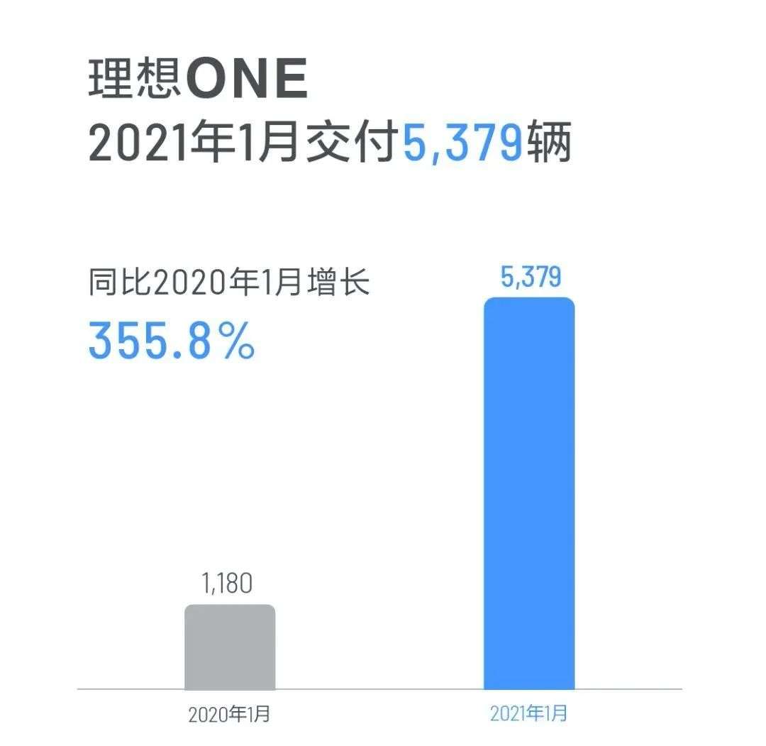 我们来看一下2021年1月,三英的交付数据:理想唯一一款混动新能源车型理想ONE在1月交付5379辆,同比增长355.8%。理想ONE累计交付量达到38976辆。