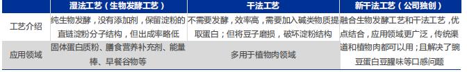 干法工艺不需要发酵,生产效率较高,提取的蛋白多用于植物肉领域。