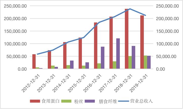公司成立之初的主要业务是粉丝的生产制造,作为国内最大的龙口粉丝制造商,其年产能超过7万吨。而粉丝加工产生的副产品蛋白和纤维,则被用作农田肥料和动物饲料。