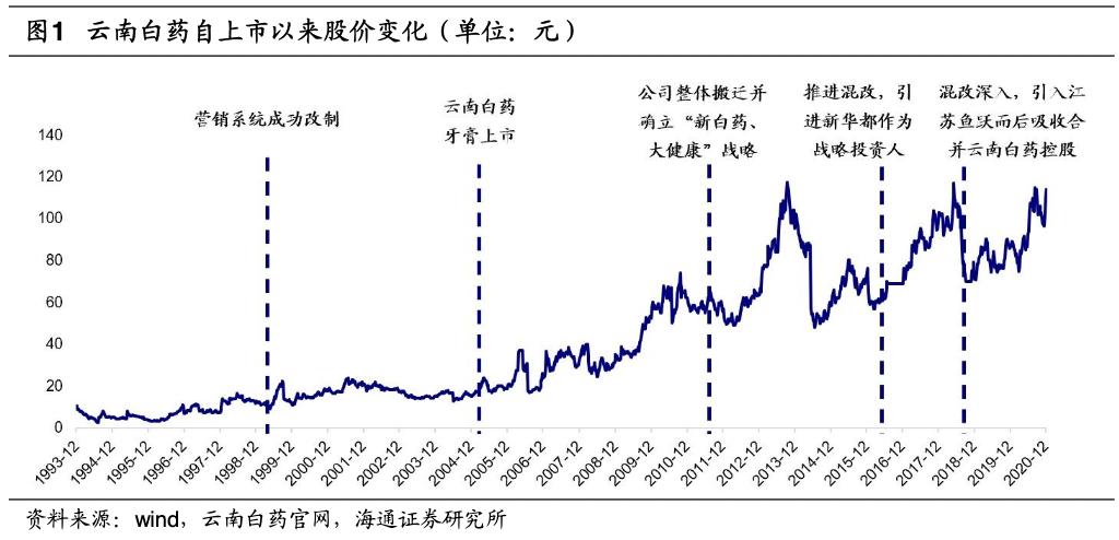 2016年公司推进混合所有制改革,引进新华都实业集团作为战略投资人,管理机制逐渐市场化;2017年6月,引入江苏鱼跃作为白药控股战投,彰显管理层改革决心,并于2017年11月,调整高管薪酬,建立管理层与股东利益紧密结合的长效考核与激励机制;2018年,混改深入,引入江苏鱼跃而后吸收合并云南白药控股。2019年,完成混改,实现整体上市,百年老店焕发新的生机活力。