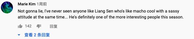 另一位观众:说实话,我从来没见过像梁森这样又man又俏皮的人,他绝对是这一季最有趣的选手之一。