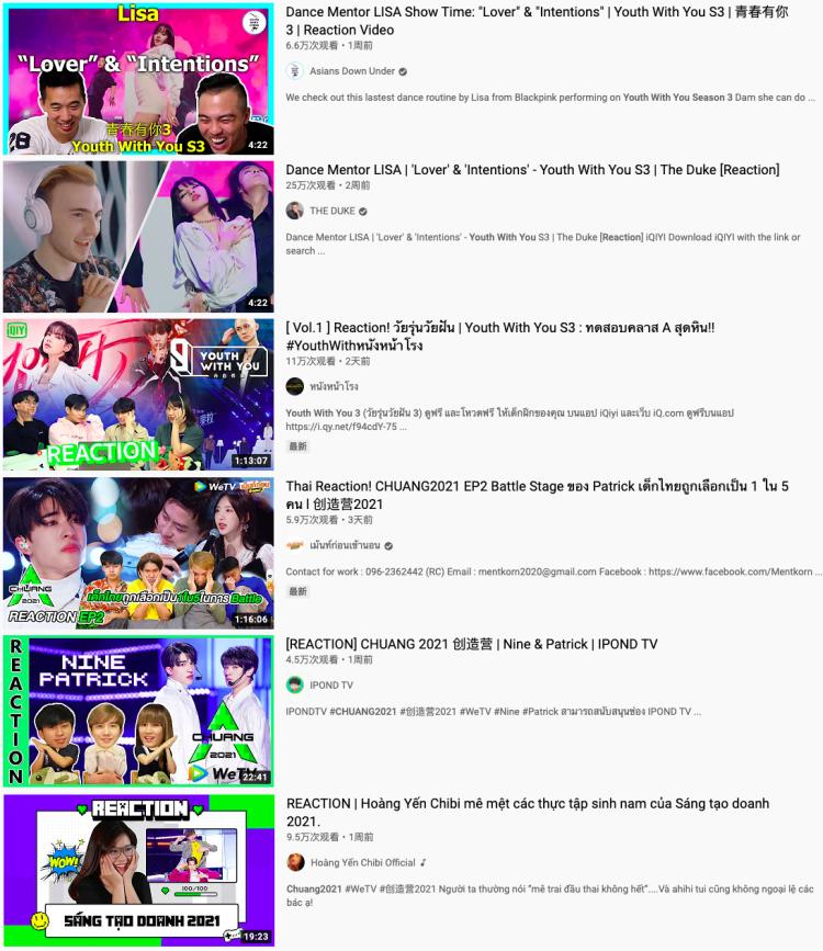 也许正是因为中国选秀节目的热度,开始有不少海外YouTuber做起了节目的reaction视频。