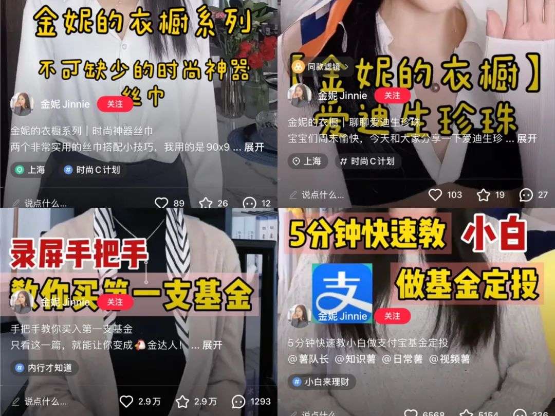 金妮Jinnie是小红书一位粉丝近55万的博主。在她以往的视频中,“金妮穿搭”“金妮聊美国”是主要内容。