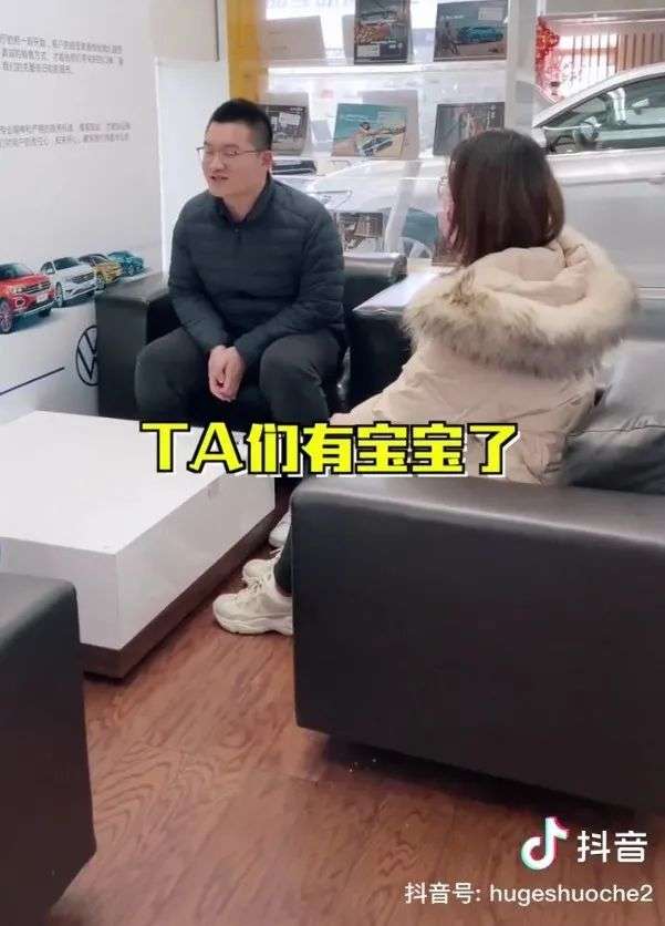 以一则简介为“又是助人为乐的一天!”的视频为例。该视频展示了虎哥与一对孕期夫妻共同去4S店购车的场景,虎哥帮其砍价了6000余元。