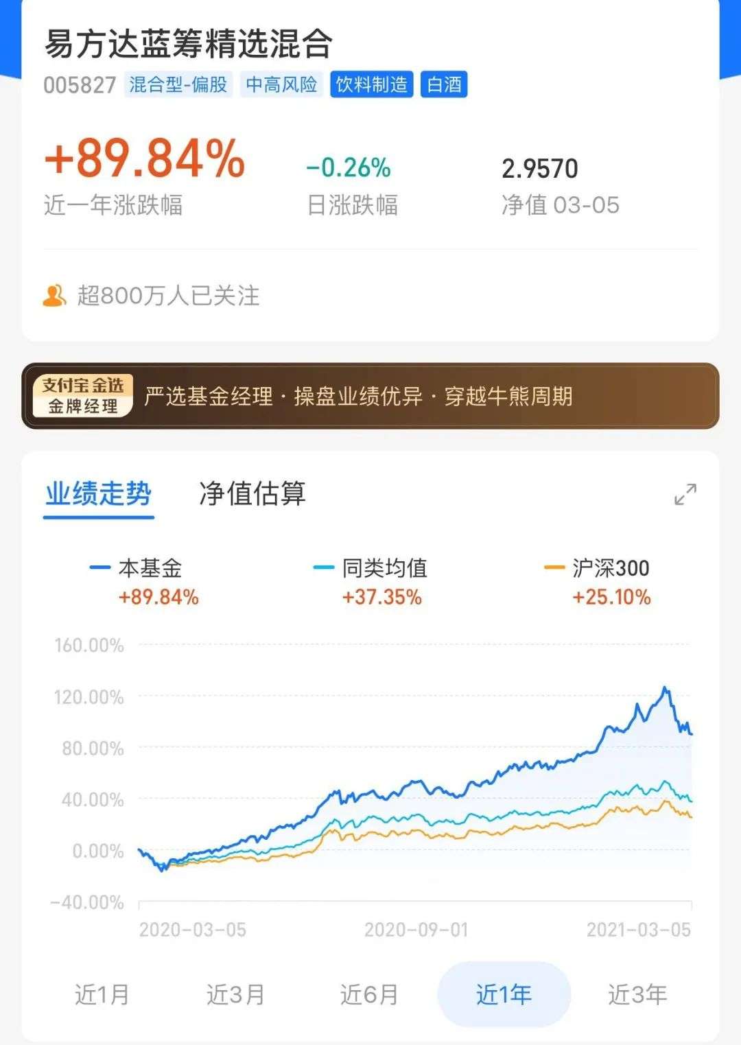 听完同事的建议,小力发现爆红的基金经理张坤近期势头大好。“虽然也不清楚怎么回事,但我心里想,市场好才是关键。”于是他在年初入手了推荐比较多的易方达蓝筹,看了下持仓的都是白酒和电器等,心想着经济的发展、白酒的加持,消费肯定会越来越好。