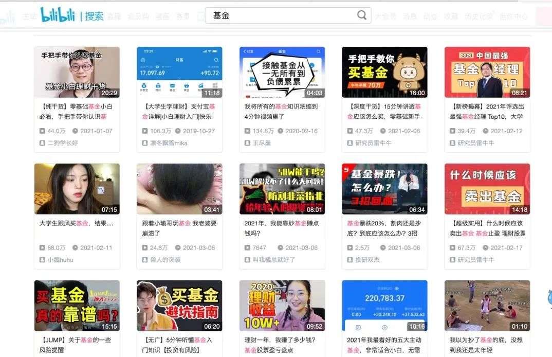 bilibili上有关基金话题视频截图
