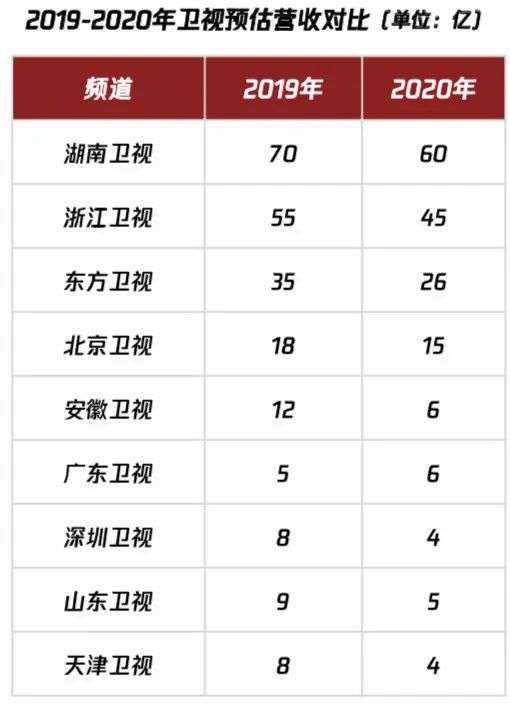 湖南卫视2018年广告收入有86.8亿,但据娱乐资本论了解,2019年湖南卫视的广告收入已经降到60亿。从各大省级卫视的预估营收来看,都在逐年下滑,而湖南卫视已经是十分领先的佼佼者。