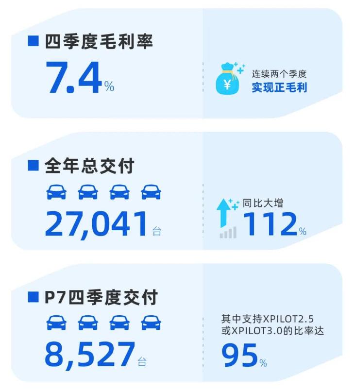 此前小鹏汽车公布的2020年四季度财报显示,2020年第四季度总交付量达1.3万台,较2020年第三季度增长51%。第四季度营收28.5亿元人民币,同比增长345.5%;净亏损同比收窄26%,全年毛利首次转正。2021年第一季度预计交付12500辆汽车,预计营收26亿元人民币。