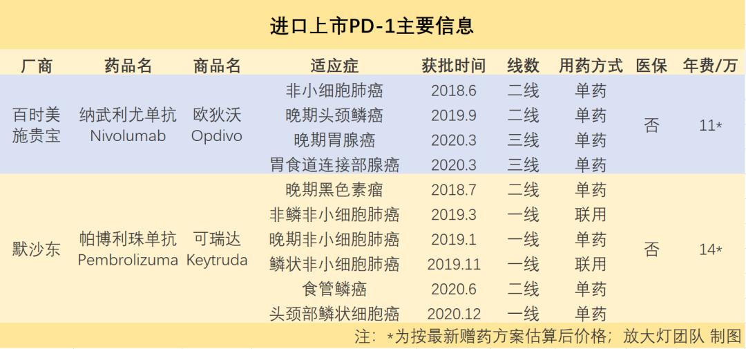 放大灯团队据公开资料整理[1][2]注:PD-1进入集采前的治疗年费包含赠药方案